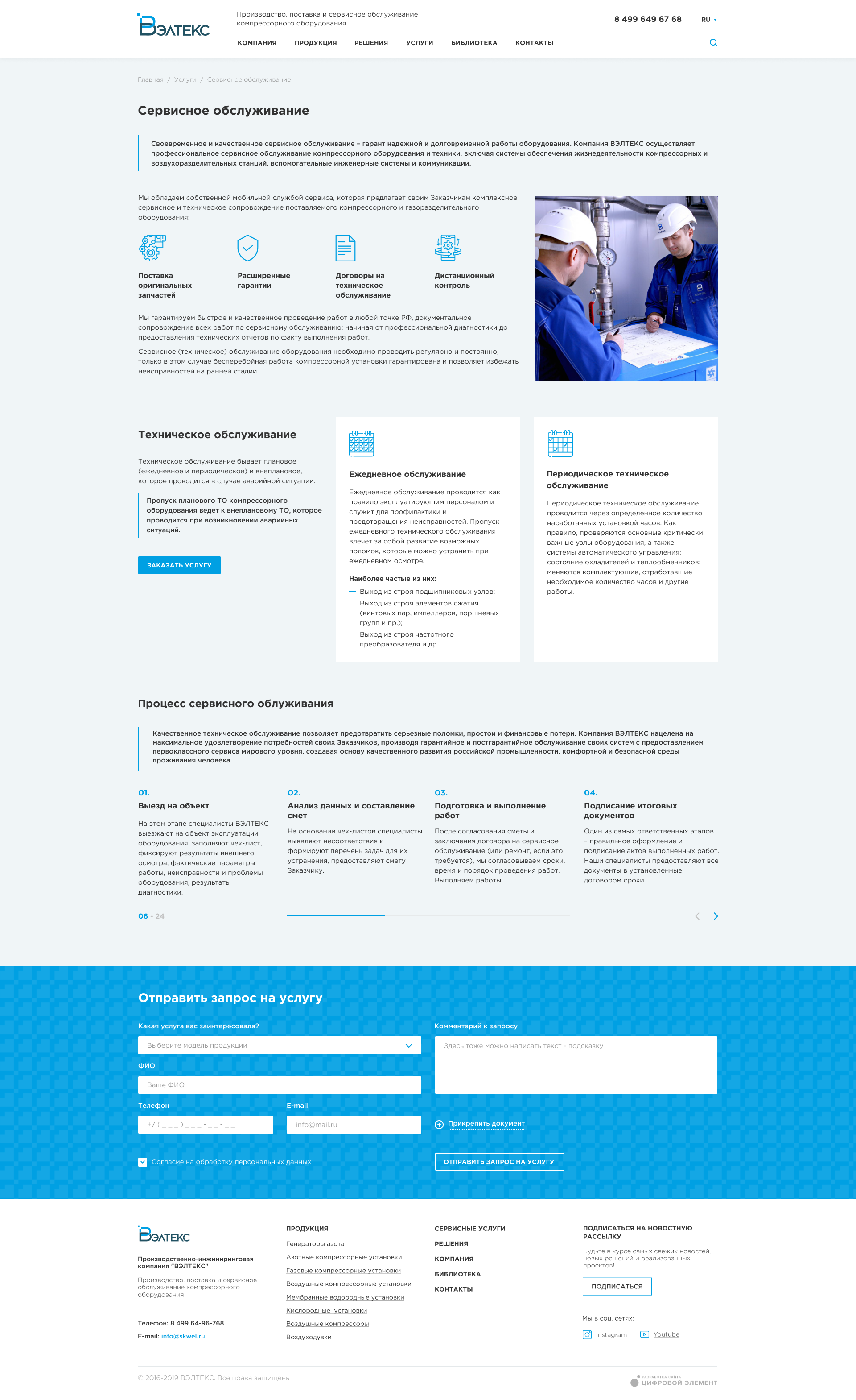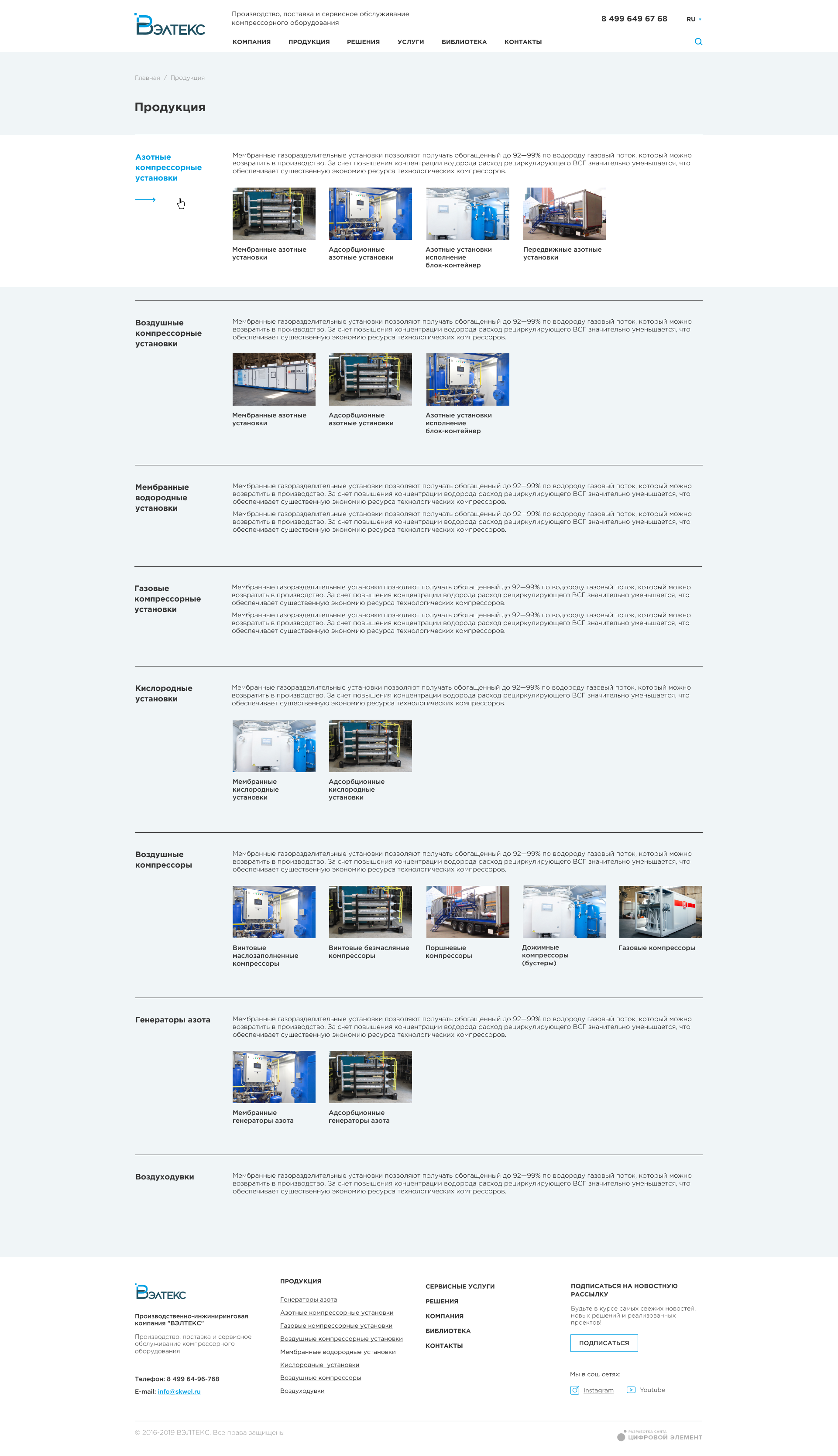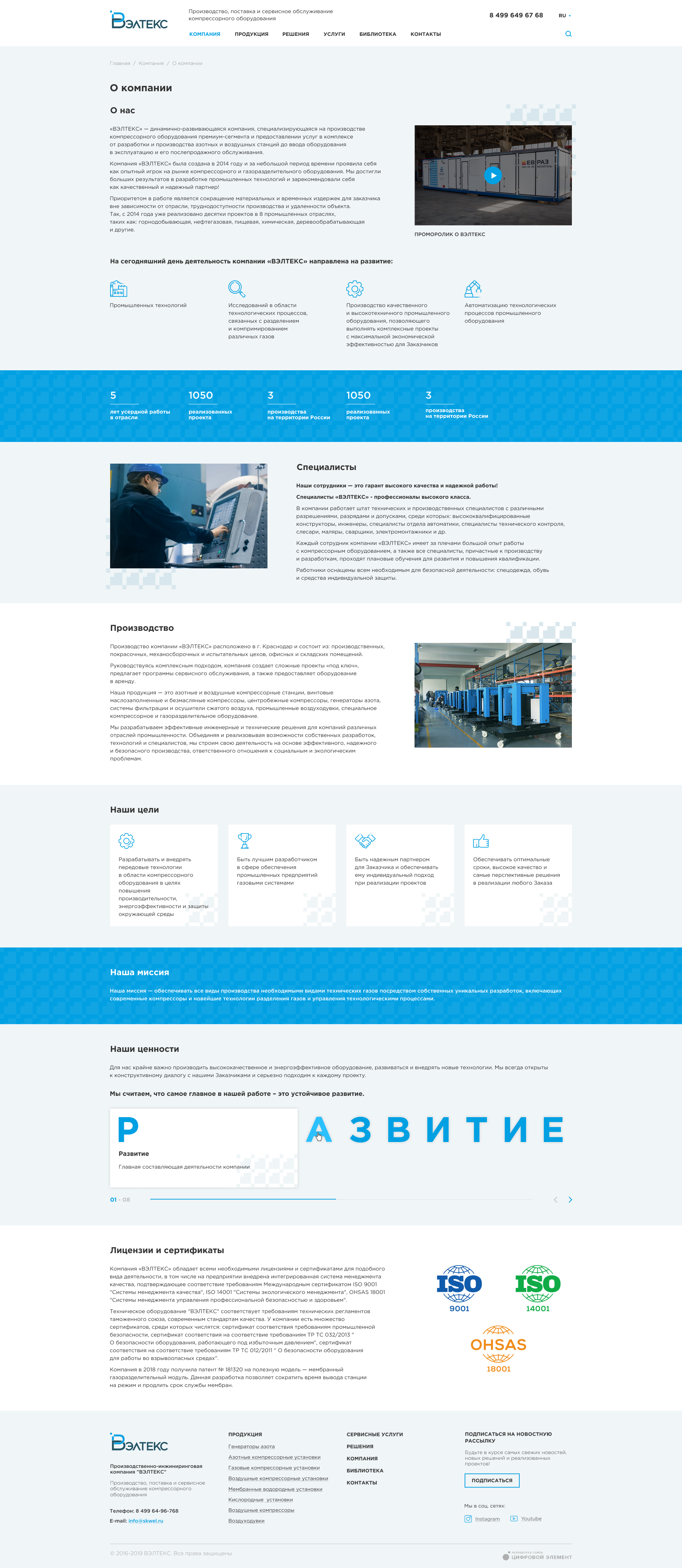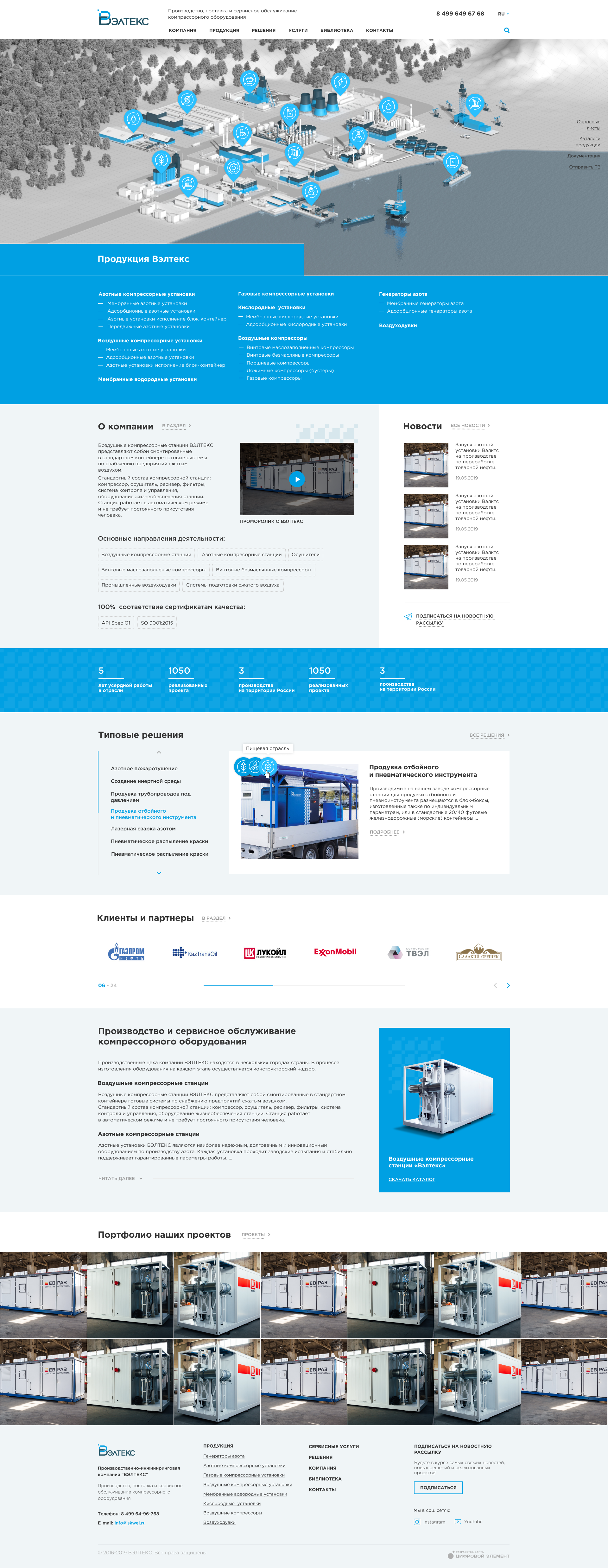 «ВЭЛТЕКС» — динамично-развивающаяся компания, специализирующаяся на производстве компрессорного оборудования премиум-сегмента и предоставлении услуг в комплексе от разработки и производства азотных и воздушных станций до ввода оборудования в эксплуатацию и его послепродажного обслуживания.