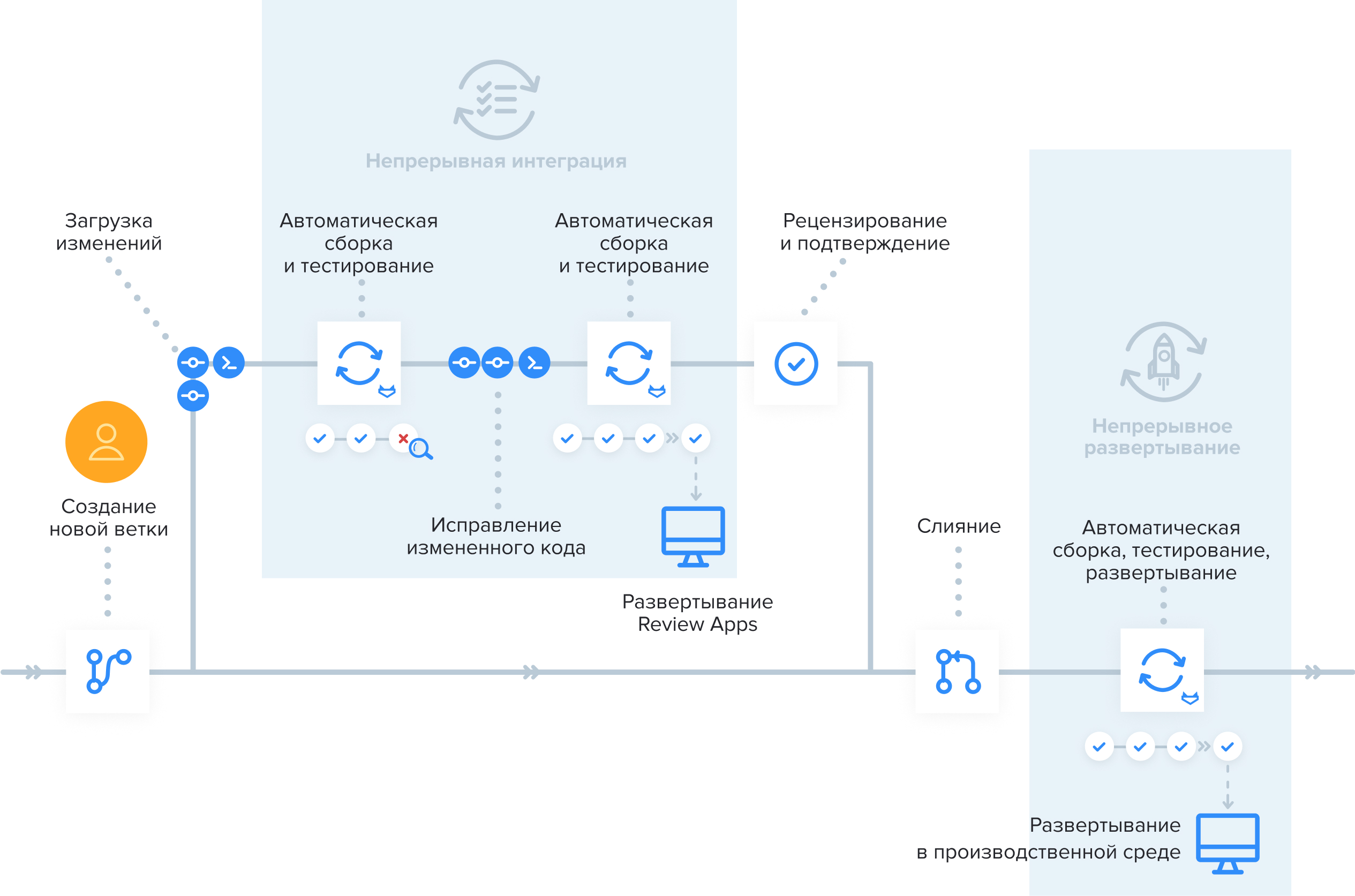 CI/CD пайплайн позволяет оперативно выводить новые функциональности